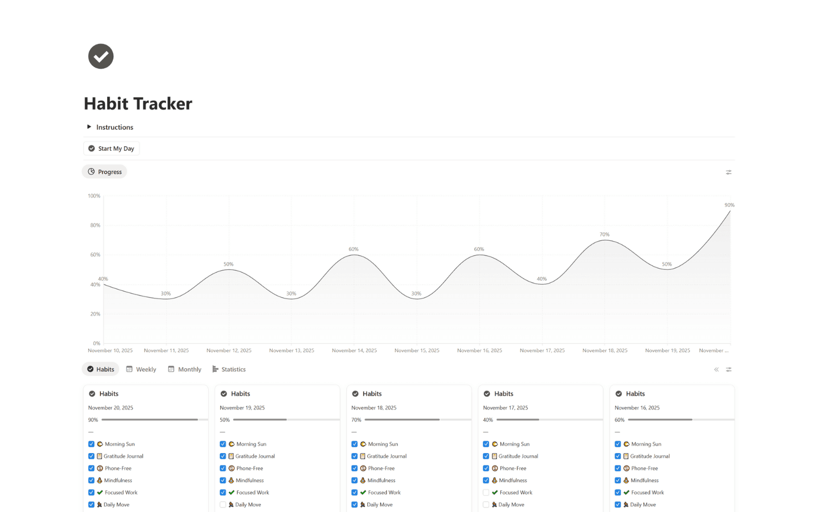The Notion Habits Tracker helps you monitor your daily habits, track your progress, and stay consistent with routines that support personal growth.